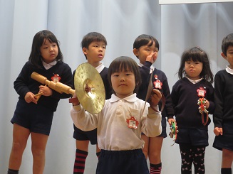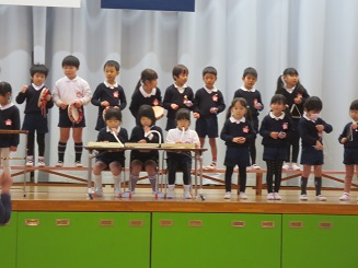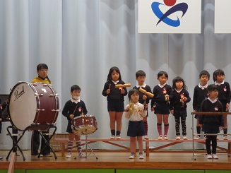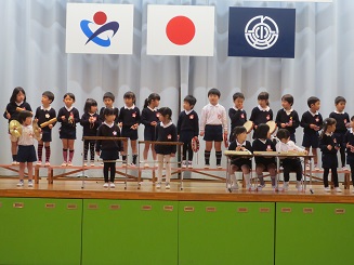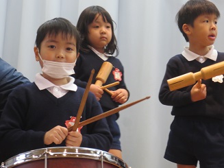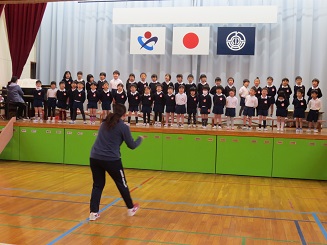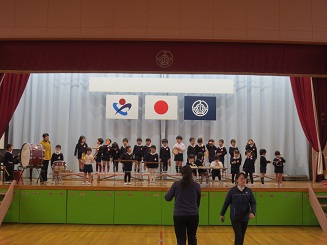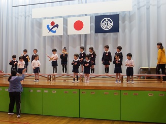 急いで練習一回ずつ 全員合唱と、きりん組さくら組さんのそれぞれの合奏を一回