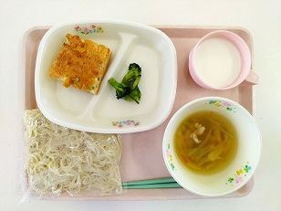 ソイ丼 かきたま汁 バリバリサラダ 牛乳