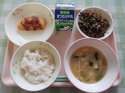 ソイ丼 かきたま汁 バリバリサラダ 牛乳