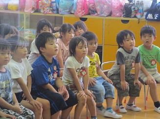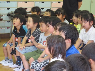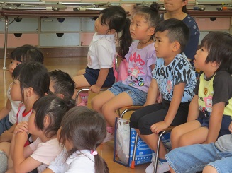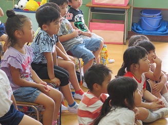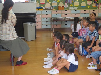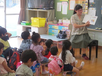 ありがとうございます。みんなの真剣さ、本に世界に引き込まれ想像している園児たちの広がる世界がこの姿にあると思います。本日の保護者の方も上手に読んでくださり、お家でもやってくださっていることに大変ありがたく思います。人の目線・声・感情や反応にはビデオ等の機器にはない暖かな園児へのテレパシーで繋がっているとと思います。機器任せでは子どもたちは育たない。これから皆さんお手数をかけますがどうぞよろしくお願いします。