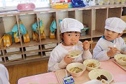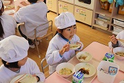 久しぶりにとても暖かい朝になりました。園児たちも登園後、直ぐに園庭に出て、竹馬乗りや縄跳び、ドッジボール、鬼ごっこなど元気に活動しています。暖かいだけで園児たちの運動量が増えています。今日の給食で郷土の料理、ねぎぬたがでました。以前は、学校でも人気のない料理でしたが、園児たちの多くがおいしいと言ってよく食べました。ぜひ、郷土の料理になじんでもらいたいと思います。