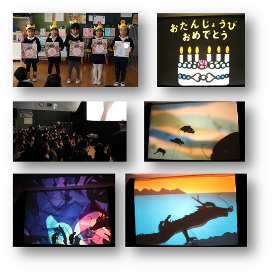 今日は2月生まれのお友だちの誕生会を行い、みんなでお祝いしました。誕生日を迎えた子どもたちの将来の夢は、警察官・アイスクリーム屋さん・幼稚園の先生等でした。頑張って夢を叶えてくださいね。今日の誕生会ではお祝いとして影絵を行いました。子どもたちもいっぱい楽しんでいました。ありがとうございました!