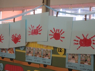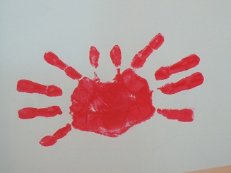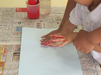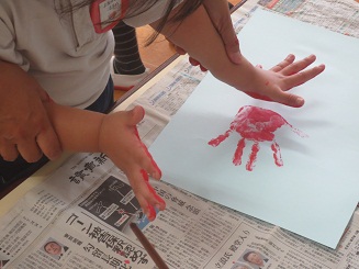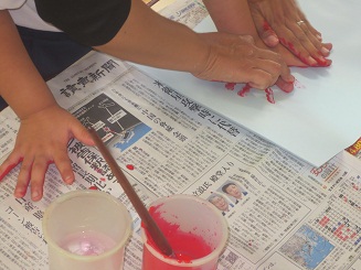 絵の具を塗った手が喜んでる。