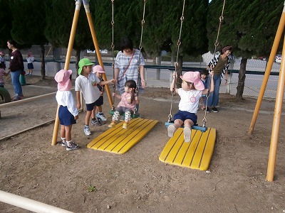 みんなお兄さんお姉さん気分で、小さい子どもたちに、やさしく接したり、手を取って遊ぶ姿が見られました。