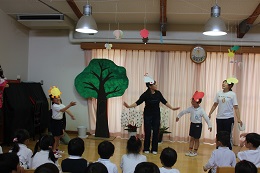 4月26日(火)は4月生まれの誕生会でした。りす組さんは1名、しか組さんは2名です。みんなでお祝いの歌を歌います。「大きくなったら」の夢を話したり、質問コーナーがあって楽しく時間が過ぎました。最後に「三匹のなかよしちょう」のお話を誕生月のしか組さんが先生たちといっしょに演じてくれました。4月生まれのお友だち、すべてのものがエネルギーたっぷりに活動を始める4月の生まれ、元気に育ってね。