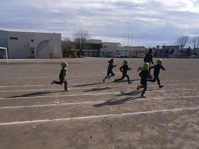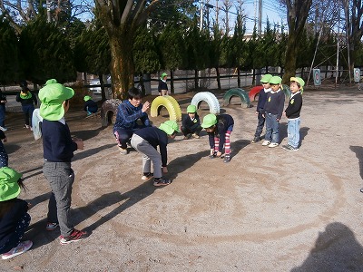 さくら組は、クリスマス会で、サンタさんにどんな質問をするか考えました。面白い意見もたくさん出て、クリスマス会に向け、気持ちが高まってきています。その後戸外に出て、50メートル走をしたり、相撲を取って遊んだりしました。