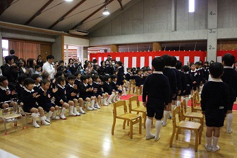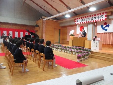 3月20日(火)、午前10時からおかべ幼稚園の第13回修了証書授与式を行いました。たくさんのご来賓の参加をいただき、実施できました。2年間、幼稚園でお勉強した園児たちは、しっかりとした姿勢でお話を聞けました。練習した以上の出来栄えでした。初めて参加した3歳児、4歳児も1時間という長い時間にもかかわらず、立派な態度でお兄さん、お姉さんを送り出しました。お部屋で、保護者の方が準備してくださった思い出のスライドを見て、笑顔で卒園していきました。「小学校に行ったらがんばるからね」そういって卒園した31名のきりん組、これからも応援しています。卒園、おめでとう。