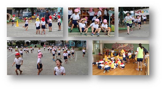 今日は臨時の避難訓練をしました。訓練は北朝鮮からミサイルが発射されたという設定で行いました。放送で「訓練・訓練・・・・・・」というメッセージが流れたら、外にいる子どもたちは室内に避難し、防災頭巾をかぶり部屋の中央に集まり体を低くしました。子どもたちはしっかりと出来ました。