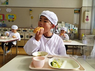 きなこ揚げパン  春キャベツとジャコ・チーズのサラダ