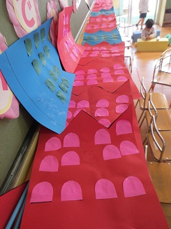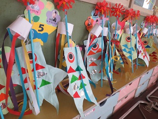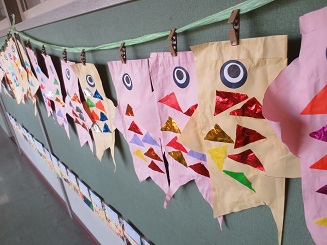 きりん組とさくら組のこいのぼりができつつあります。