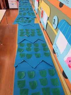 するとさくら組は、協力して一つの大きななこいのぼり製作に取り組んでいました。みんなが一つの場所にかいして作業することで、協力の意識が育まれていくことでしょう。みんなの和はすごいことを少しずつ少しずつこれからつかんでいきましょう。
