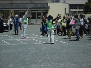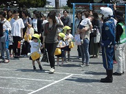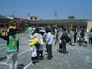 保育参観・PTA総会後、交通安全教室が行われました。警察官さんからお話しを聞いた後、園庭で親子で横断歩道の渡り方の指導を受けました。