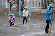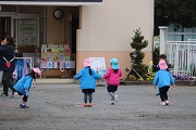 本当に冬らしいとても寒い朝になりました。登園してくる園児たちの服装もジャンパーを着て、防寒しながらの登園です。でもそんな寒い朝でも園児たちは、園庭に出て、縄跳びの練習、竹馬乗りの練習、鬼ごっこなど元気に園庭を走りまわっています。子どもは、すばらしですね。