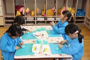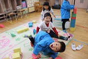 園庭で活動した後、室内でぱんだ組は、粘土でものづくり、ばら組は、イスとりゲームで身体を温めながら、友だちのの協調性や連帯感を養いました。どちらもとても楽しそうでした。