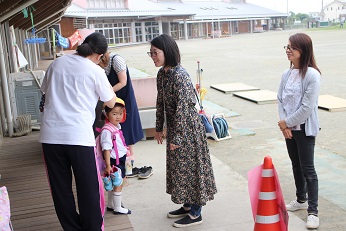 5月2日(水)は第1回の引き渡し訓練を実施しました。地震だけでなく、不審者対応など、園児の安全を第一に考えての避難訓練です。園長からは、お迎えまでは原則園でお預かりしていますということと、ご家族で避難場所を話し合っておいてくださいというお願いをしました。一人一人引き渡しを行いましたが、帰りもお子さんの手をひいて帰ってくださっている姿が印象的でした。まだまだ小さな子供です。しっかりと手を離さず、帰宅させていただきたいと考えています。