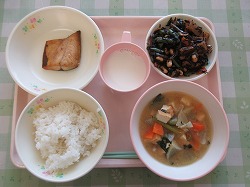 ソイ丼 かきたま汁 バリバリサラダ 牛乳