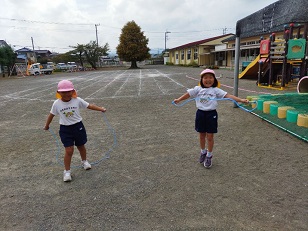 運動会のご褒美でいただいた縄跳びをしたり・・・。