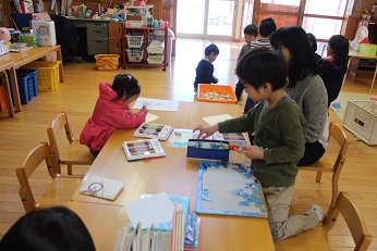 2月7日(水)は平成30年度、4月から入園するお友達の入園許可書交付式、入園説明会を実施しました。一人一人、お名前を呼ばれて「はい」のお返事といっしょに前に出て許可書を受け取ります。大勢の前で恥ずかしがる子も当然いましたが、堂々と受け取ることができる子も大勢いました。これから、初めての集団生活が始まるのだなあと思いました。入園の説明をしている間に、3歳児、4・5歳児、それぞれのクラスに入って遊びましたが、楽しそうにお友達と遊べていました。人気のおままごとやブロック、ジグゾーパズルや塗り絵など思い思いの遊びを楽しんでいました。泣いている子も少なく、頼もしさを感じました。