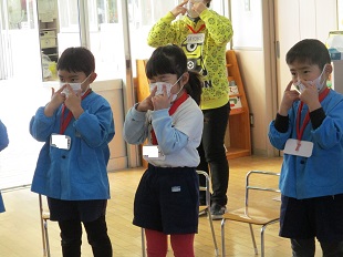 「まん延防止等重点措置」の延長を受け、例年実施しております保育参観の持ち方の変更にご理解いただき感謝いたします。22日に分散型保育参観の計画表を配布しました。第一希望を優先に計画表を作成しましたが、思い通りにならなかった保護者の皆様のご理解に感謝いたします。参加人数を踏まえ三密を考え計画表を作成したことにご理解下さい。参加に際しましては、配布しました健康確認票の提出をお願いいたします。