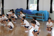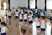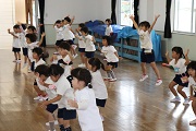 1学期も終了まであと2週間、2学期の運動会や地区敬老会に向けてぱんだ組、ばら組の合同によるダンス練習が始まりました。今日は、どちらのクラスも踊れるパプリカの曲でダンスをしました。残りの日を使って、実際に踊る曲を選定していきます。よい曲が選定でき、楽しいダンスを披露できるようになるといいですね。