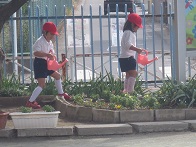 お花も園児も喜んで 私たちがしっかり世話をします。
