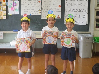 公民館より七夕の賞を頂きまでした。「天の川賞」、みんなで協力して製作し得られた賞です。協力して活動することの大切さ、良さを伝えました。代表で住吉先生が受け取りました。