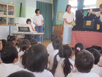 お化けが出るシーンにおどろき、みんな大興奮です。「キャー・・・。」