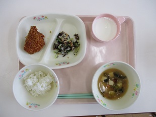 ソイ丼 かきたま汁 バリバリサラダ 牛乳