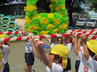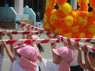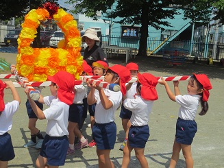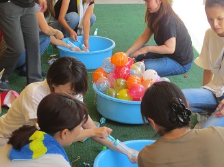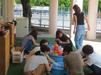 そして、午後からは夏祭りの準備です。準備よければ本番よしです。お母さん方の熱い協力が見方です。楽しそうです。