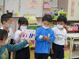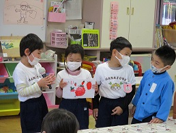 「まん延防止等重点措置」の延長を受け、例年実施しております保育参観の持ち方の変更にご理解いただき感謝いたします。22日に分散型保育参観の計画表を配布しました。第一希望を優先に計画表を作成しましたが、思い通りにならなかった保護者の皆様のご理解に感謝いたします。参加人数を踏まえ三密を考え計画表を作成したことにご理解下さい。参加に際しましては、配布しました健康確認票の提出をお願いいたします。