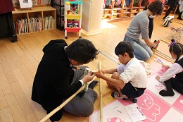 10月29日(土)は土曜保育を行いました。風はありましたが、日差しの暖かな日になりました。4歳児(りす)組さんは竹のぽっくり作りに、そして5歳児(しか)組さんは竹馬づくりにチャレンジです。お家の方とおしゃべりを楽しみながら、いっしょに作りました。それぞれの材料に思い思いの絵を描いて、オリジナルの作品を製作します。できたら、園庭でご家族といっしょに練習です。暖かな土曜日、温かな気持ちになれる時間でした。ご参加くださった皆様、ありがとうございました。