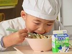 五目うどん ホルモン揚げ 上州サラダ 牛乳