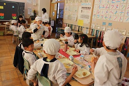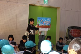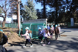 2月7日(火)は、りす組さんがインフルエンザの欠席が増え、今日から3日間の臨時休業日になりました。元気なしか組さんは予定通り、本郷小学校の1年生との交流会にでかけました。風が強く吹き付け、舞い上がる土ぼこりの中を1時間かけて、歩いて本郷小学校に行きました。歯をくいしばってたどりついた本郷小学校では、帰りにはみんなが口々に「楽しかったぁ」というほど温かく、先生方や1年生のみなさんに迎えていただきました。保育園のお友だちもいっしょになった交流会では、本郷小学校の1年間を絵で紹介してもらったり、器楽演奏を聞かせてもらいました。詩の暗唱やなわとびも披露していただき、園児たちは真剣に見ていました。いっしょのゲームも盛り上がり、給食をいっしょにいただくころには和やかな雰囲気でした。校長先生には、園児たちの先頭に立って校内を案内していただきました。校長先生といっしょの学校探検、校歌を歌ってもらったり、真剣にお勉強している教室も見させていただきました。給食もおいしくておかわりするほどでした。園児たちももうすぐ1年生、授業風景には表情も引き締まっていました。先生方には大変お世話になり、入学前の貴重な体験となりました。ありがとうございました。