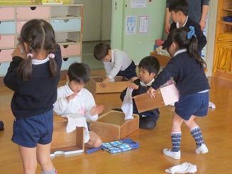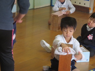 明日きりん組さんはいよいよ修了式です。一年間の使った道具の片付けと清掃をしました。一年間の汚れを落とせ、来年のきりん組さんのために・・・