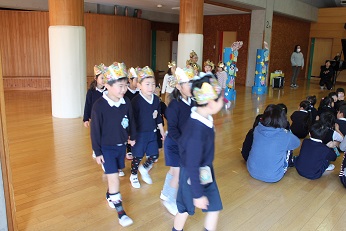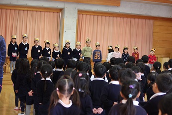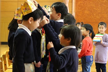 3月12日(火)は本年度最後の3月生まれのお友達の誕生会を開きました。みらい幼児園おかべとおかべ幼稚園で14人のお友達が一つ大きくなりました。5歳児は進学する小学校を大きな声で答えていました。もうすぐ、卒園です。好きな食べ物の一番人気は「いちご」、今が旬の果物です。「大きくなったら、なりたいものは?」の質問には、人気の食べ物やさんやヒーロー、ケーキ屋さん、仮面ライダーの他に、お花屋さん、看護師さん、建築家、水泳の選手という夢も語られました。夢に向かってがんばる深谷の子、応援したいと思います。先生たちからのプレゼントは「イグアナレストラン」のお話でした。