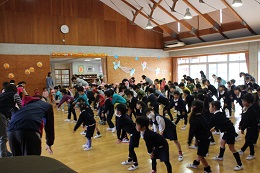 11月10日(木)は、昨日に引き続き、寒い日です。昨日まで園庭で行っていた体操マラソンですが、今日は大ホールに場所をかえて行いました。ラジオ体操第一に始まり、昆虫太極拳、エビカニクス、ラーメン体操とたくさん体を動かしました。「まだやりた~い」、若さに脱帽です。お部屋では、しか組さんは、遠足の体験から動物園準備を、そして2クラスとも生活発表会の練習が始まっています。