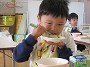 ご飯 いわしの蒲焼き パリパリサラダ 豚汁 牛乳