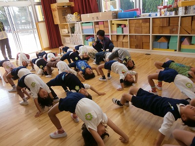 さくら組は、縄跳び、組体操、合奏の練習です。組体操を始めて行い、力を込めて取り組まないと、できないことに気付いたようです。合奏は、リズムうちがしっかりとできるようになってきました。今日は、鍵盤ハーモニカや、木琴も登場し、意欲的に取り組む子の姿も見られました。日々の練習の積み重ねで、本番に臨みたいと思います。