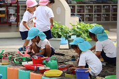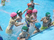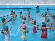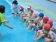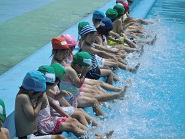 暑い日が続いていましたが、昨日、今年度のプール開きが行われました。小学校の広いプールを見て、どきどきの園児たちでした。水に入る準備をしている段階では、水を怖がる子はおりませんでした。