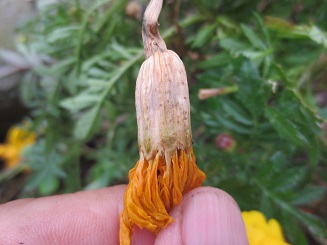 今日は、オシロイバナ、マリーゴールド、アサガオの実をみつけました。