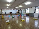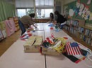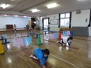 運動発表会で飾った万国旗の片付けにきてくださいました
