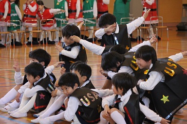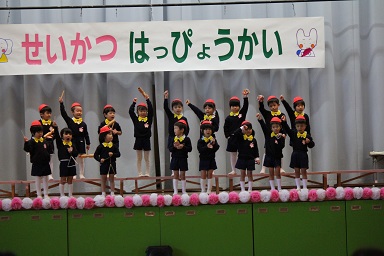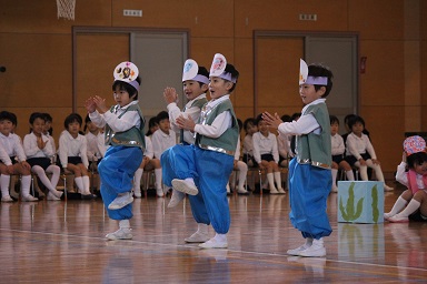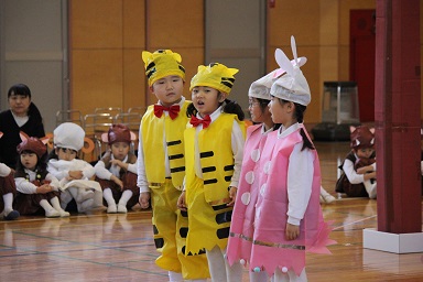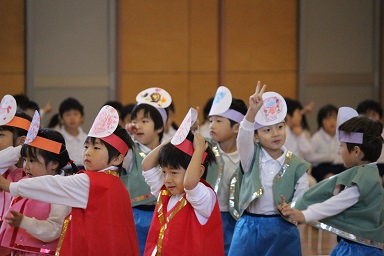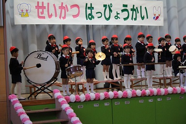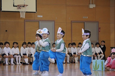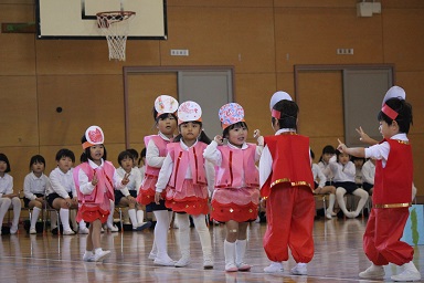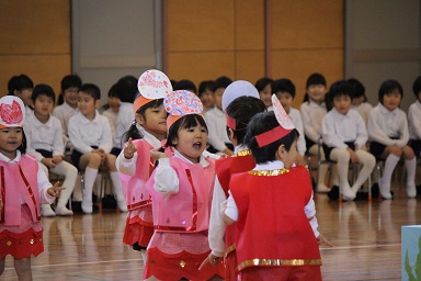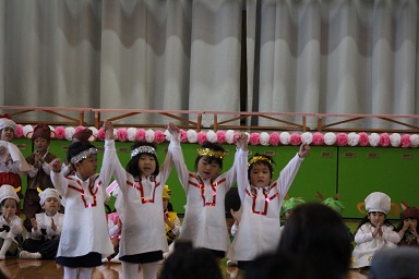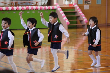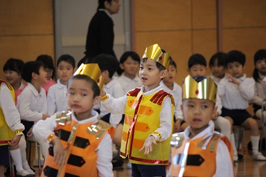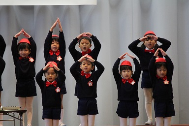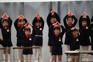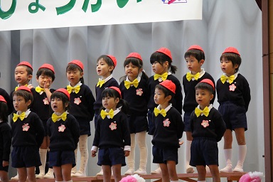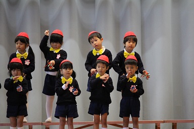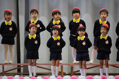 保護者・ご家族の皆様、本日は寒いご多用にもかかわらず発表会にご参観してくださり有り難うございます。また、理事の皆さん準備等ありがとうございました。皆さんの応援が園児の一番の励みとなります。一生懸命な取り組みと今日は先生が作ってくれた衣装が加わり、さらに一段と可愛く、格好よく素敵になると確信しています。応援よろしくお願いします。