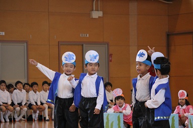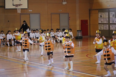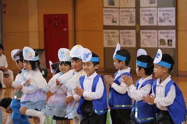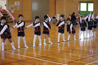 また、私が今一番よかったと今思っていることは、①みんなが努力し毎日進歩している姿 ②友達に親切に教え合う姿、例えば休んでいる子に立ち位置を教えたり、手を差し伸べたりしている姿を見て「いい子たちだな。」と強く感心しました。心も成長しているすがたが見られたことです。このような意味も含めて今日は楽しんでご覧ください。有り難うございます。