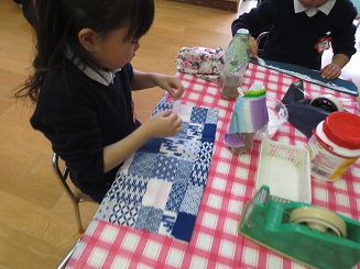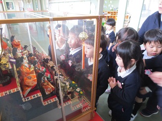 そうしたら今日、きりん組さんたちはひな祭りの歌を聞き、ひな祭りの説明の絵本を担任の先生から読んでもらい、園のお雛さま見学をしました。ぼんぼりに明かりが灯りました、「きれい」のつぶやきが・・。ひな壇が艶やかな色に包まれる空間となり、みんな見入っていました。 さくら組さんの教室では、自分たちでお雛さまづくりをしています。きれいな衣装を飾り付けています。鮮やかな色・・・。日本の昔からの行事、ひな祭りの節句は歌からも想像できるように穏やかな雰囲気を醸し出してくれます。おひな様を作るという体験することでより興味、関心がわいてくる子もいるでしょう。今は作っているだけでも、その体験(色々な体験)は自らの感覚を研ぎ澄ましているかもしれません。 学校に入るとこんなにゆっくり味わう間もないと思います。幼稚園での丁寧な活動は、園児の心をより豊かにしていることを強く感じています。 今の時期の体験・感動・感覚が大切です。ご家庭でもじっくり味わってみてください。