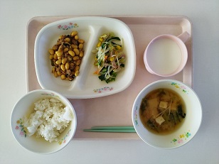 ソイ丼 かきたま汁 バリバリサラダ 牛乳