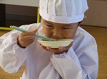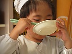 勢いよく食べると真っ白なエプロンに