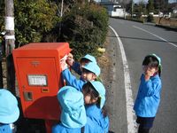 年長さんが代表で幼稚園の近くのポストに出しにいきました。