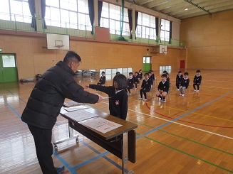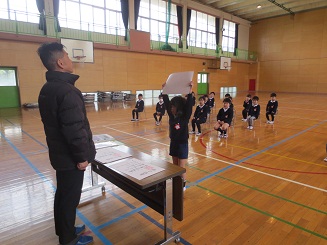 今日は上柴西小体育館にて修了証書の授与練習をしました。実際の会場で動きや間隔やタイミングをつかみました。