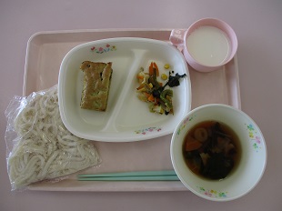 ソイ丼 かきたま汁 バリバリサラダ 牛乳