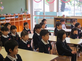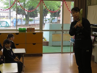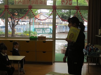本日は午前中雨、室内で遊ぶ。先生の語り、読書